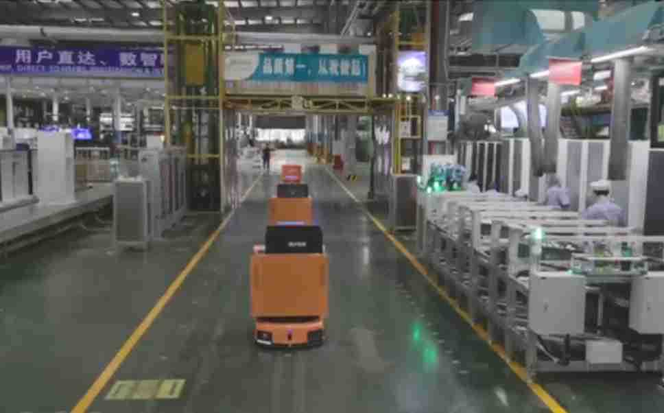 为车载冰箱物流配送打造的智能解决方案,,,,包含产中物流通过潜伏举升AMR搬运至线边,,,,产后成品物流智能仓储,,,流程包含产中物流智能齐套入库,,,线边安灯叫料AMR智能配送至线边,,,,成品入库、、、出库,,,通过无人堆高车机器人,,智能仓储管理替代人工作业管理,,,实现更高存储、、、、更高效率、、更具柔性化的解决方案。。。